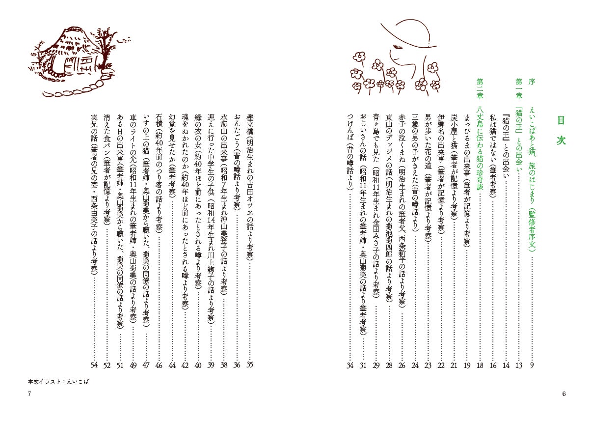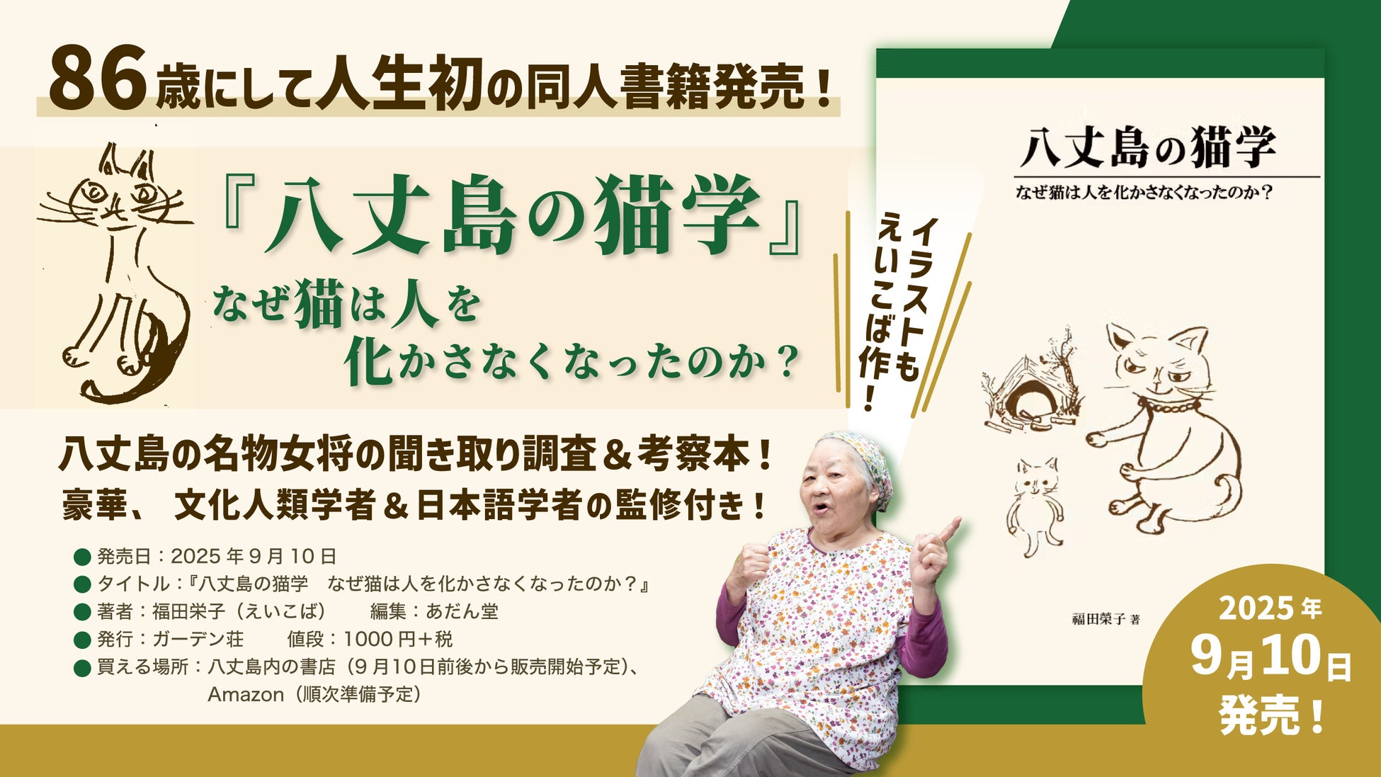 民宿「ガーデン荘」を60年経営する名物女将「えいこば(福田栄子)」の初著作が完成。文化人類学者&日本語学者の解説や対訳、地図付き。貴重な「猫に化かされた話」の聞き取り調査で、えいこばが見たものとは?