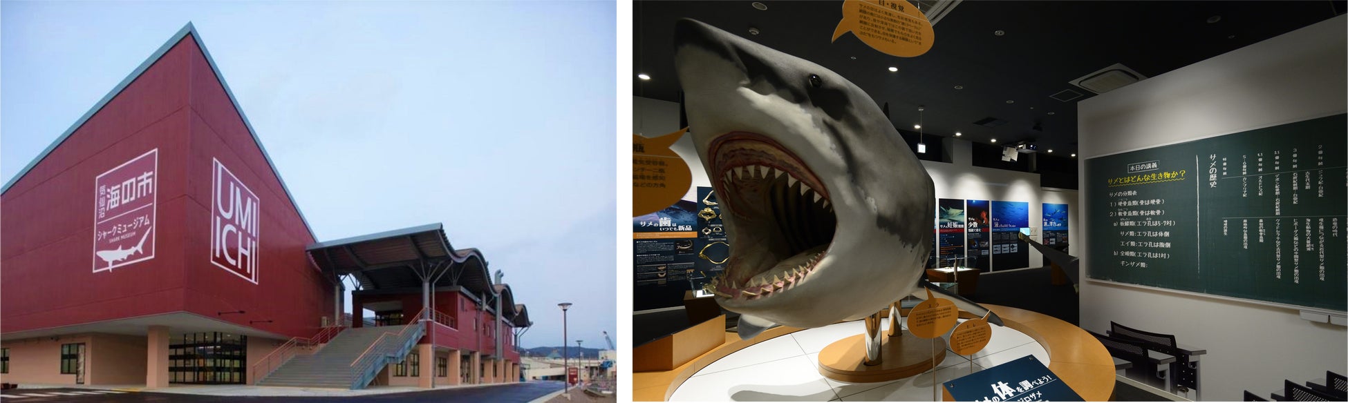 三陸の海の幸と観光の魅力が詰まった複合施設。1階には鮮魚や水産加工品、地元グルメを楽しめる飲食店が並び、2階には観光案内所と日本唯一の「シャークミュージアム」が併設されています。