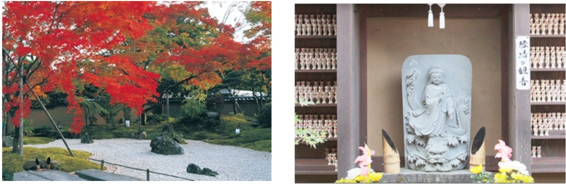 「縁結びの寺」「紅葉の名所」として多くの人が訪れる寺院。四季折々の美しい庭園が特徴で、特に10月下旬から11月中旬の紅葉の時期には庭園がライトアップされ幻想的な雰囲気に包まれます。天然石やガラスで作るオリジナル数珠体験も人気です。