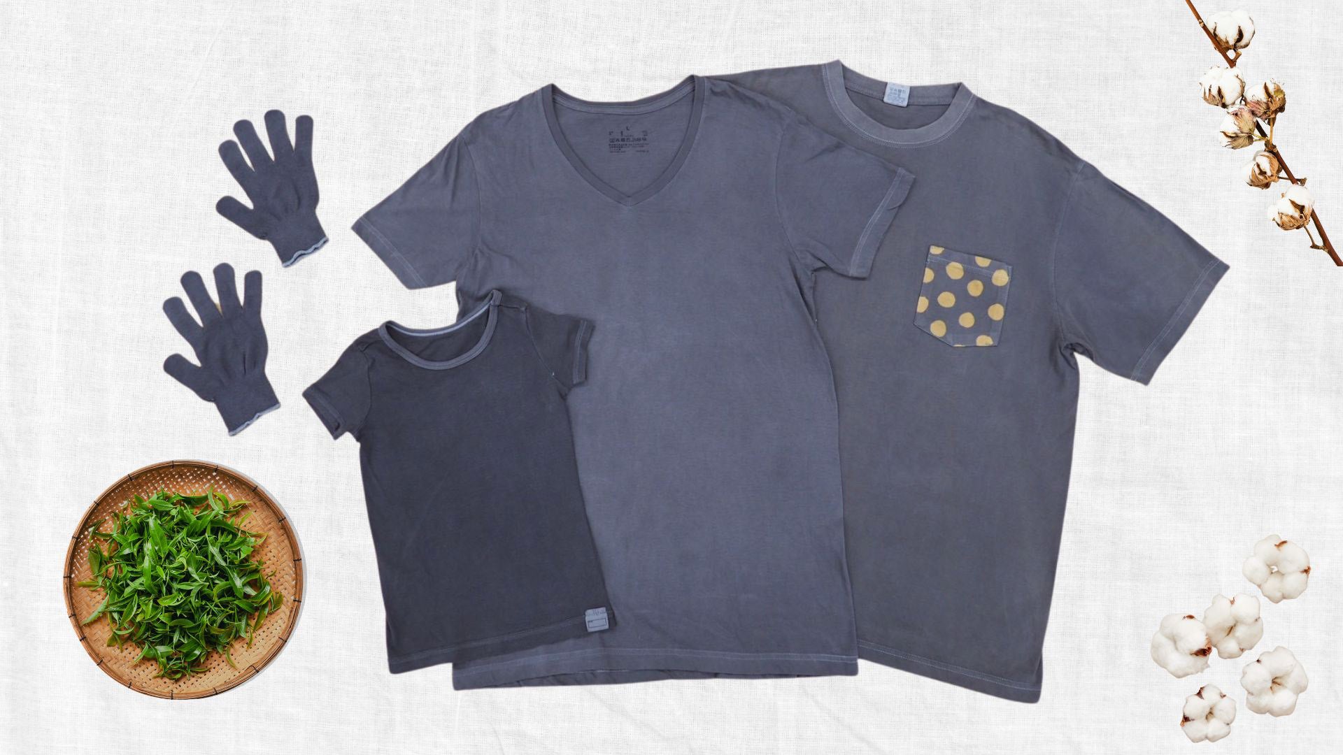 アトピー性皮膚炎の学生が、肌へのやさしさ、着心地を求めて開発したインナーシャツです。廃棄される国産の天然緑茶を染料に使用し、99.9%の抗菌性があります。