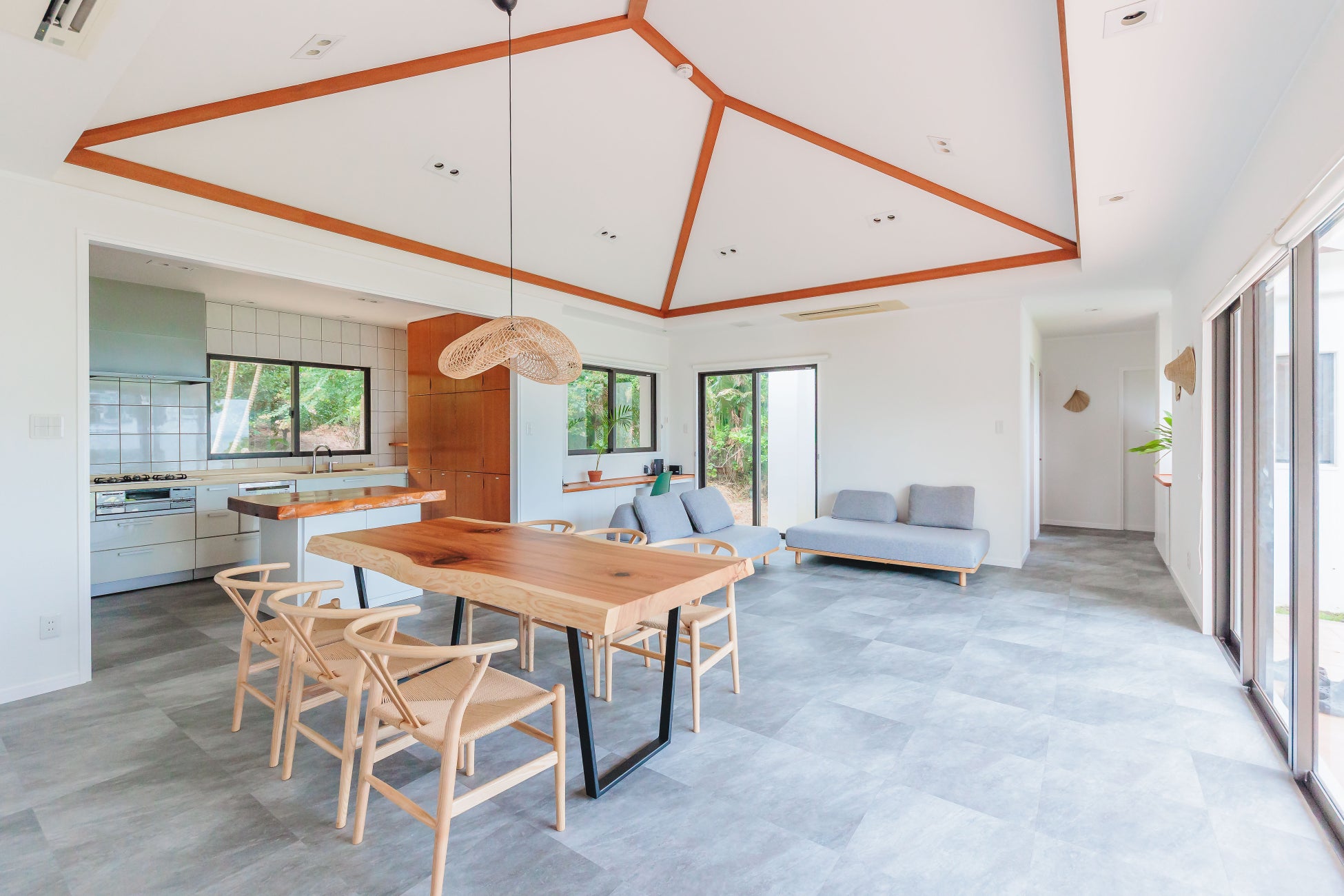 宿は四方を沖縄の豊かな自然に囲まれ、まるで秘密基地のような空間。都会の喧騒から離れ、鳥のさえずりと木々のざわめきだけが響く、完全プライベートな時間をお楽しみいただけます。