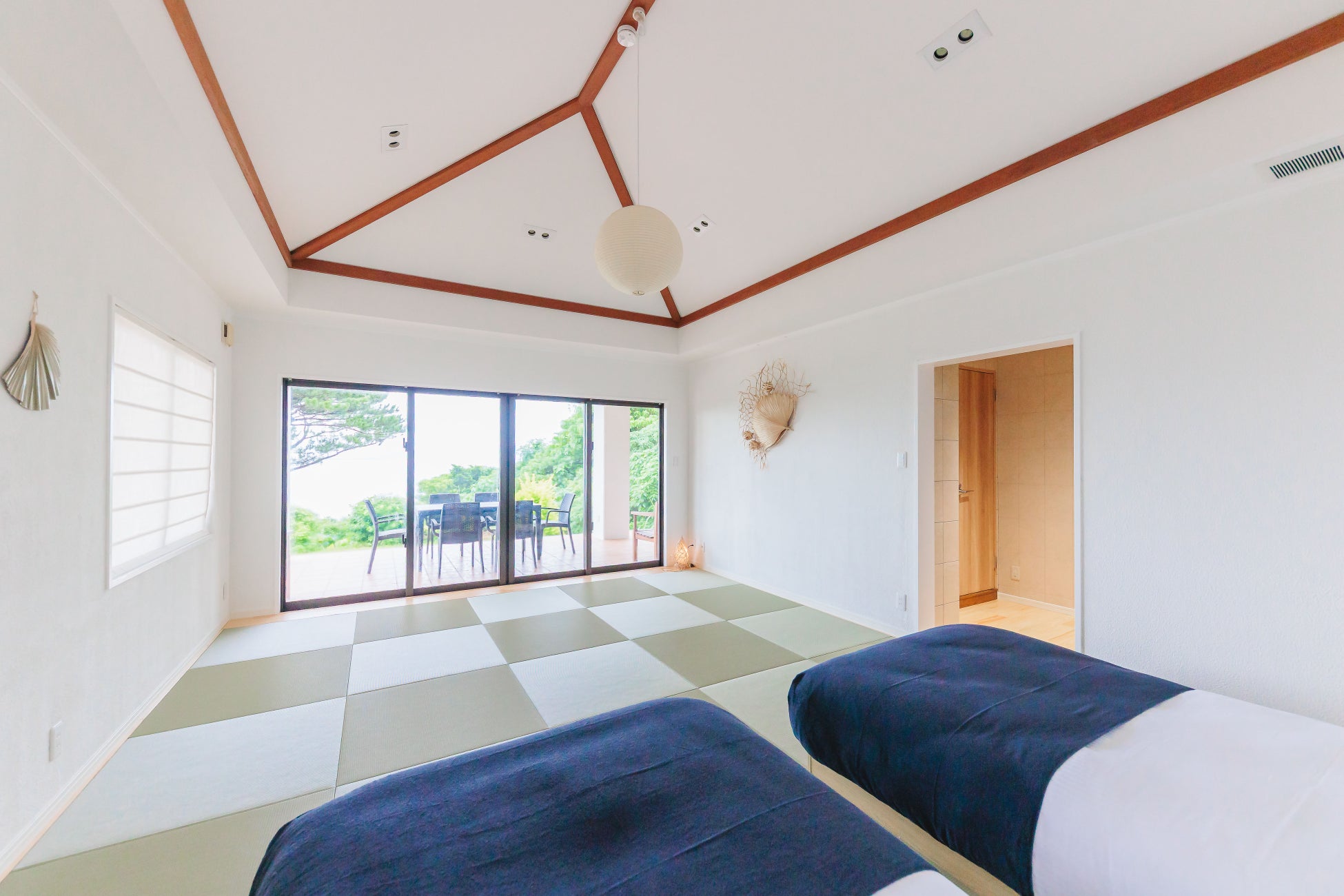 寝室は全部で3部屋あり、琉球畳を取り入れた和の空間もご用意。最大9名まで宿泊でき、家族や友人との特別な時間を過ごせます。