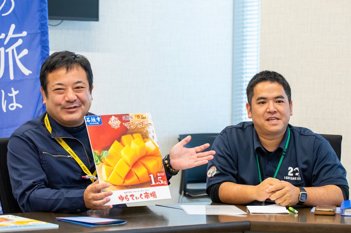 石垣島にはJAが運営する産地直売型市場がある。ファーマーズマーケットやえやま ゆらてぃく市場で、農家が育てた旬の青果や加工品が並び、農産物の拡販、魅力発信の場となっている。ゆらてぃく市場ではJA出荷された農家のマンゴーをふるさと納税へ出品しており、寄附は好調。人気の要因についてファーマーズマーケットやえやま ゆらてぃく市場 店長 玉代勢秀弥さんは「一次産業とふるさと納税は、相性が良い。農産物の受注、PR、オンライン活用にうってつけのしくみです」と語る。JA営農指導員・マンゴー担当 安谷屋さんは「石垣島のマンゴーのよさは甘みと酸味のバランス、その絶妙さ。島に来て店頭でしか味わえなかった石垣島のマンゴーのおいしさを、ふるさと納税でぜひ味わっていただきたい」と続けた。