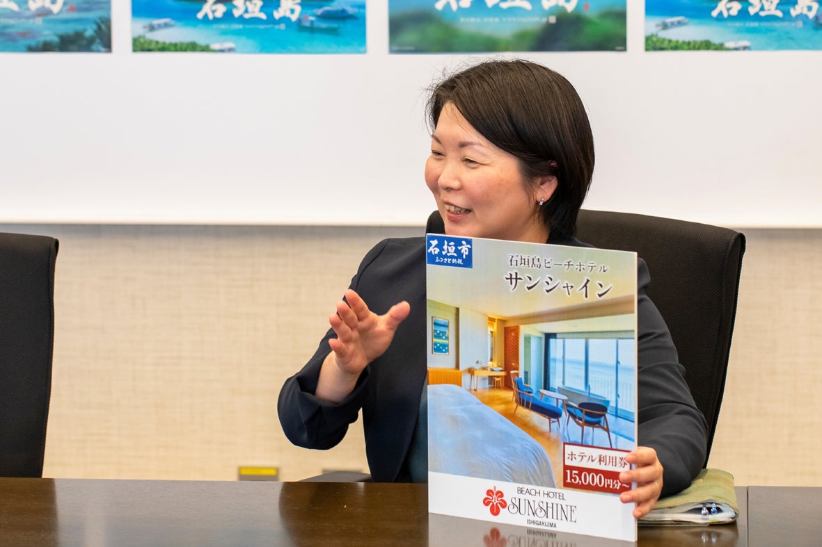 「昨年開業45年、島に根ざした島のホテルとして歩んでまいりました」とは、石垣島ビーチホテルサンシャイン 総支配人 赤城陽子さん。専用の庭師が庭を手入れし、星空ツアーに星空専門ガイドがつく。地元食材のディナー、絶景大浴場、インフィニティプール。話題のサービスは一早く形にし、提供は今も続く。「島内、多くグローバルブランドの進出がありましたが、当館にも20年以上通ってくださるご夫婦がおります」客層のキーワードは、大人、島旅、リピーター。いつもの旅がふるさと納税でできるようになれば、固定客をもつ旅先ほど強みになる。返礼品への同ホテル登録は今年。⽇は浅いものの、既に多くの寄附があるという。「市が盛り上がること、特産も観光もという流れが広がることを期待しています。おいしいお肉も熱帯果樹も、島の景色の中で味わってもらうのがいちばんですから」。
