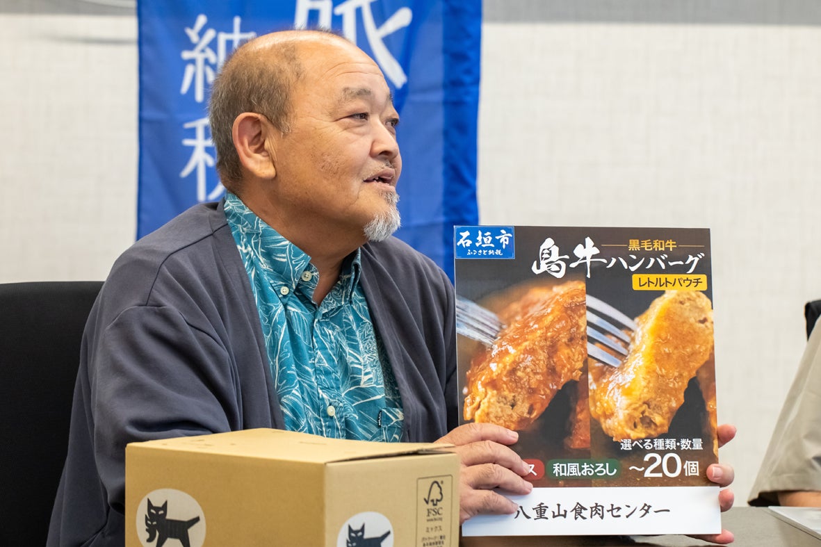 「常温もので、家庭で気軽に楽しめる価格帯の商品を作りたいと思っていました」とは株式会社 八重山食肉センター総務部長 幸喜俊明さん。同センターは衛生管理と精肉技術で八重山エリアの食肉供給を一手に引き受ける。昨年は県外大手とコラボレーションして自社ブランド商品の開発を進めた。出荷は順調だ。今年は沖縄県内事業者とも連携を深め、レトルトハンバーグに挑戦した。同センターは目下本業である と畜、カットの精度をあげ食肉の安定提供に努めると同時に島外の提携先と商品開発、量産化を進める。ふるさと納税に取り組むことで見えてきたやり方である。幸喜さんから寄附者への一言をいただいた。「お肉がおいしい石垣島です。家庭でたくさんたのしんでください。そして島にはお肉がおいしいお店がいっぱいあります。みなさんで、島へ食べに来てください」。