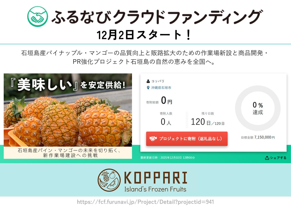 > 石垣島産パイナップル・マンゴーの品質向上と販路拡大のための作業場新設と商品開発・PR強化プロジェクト