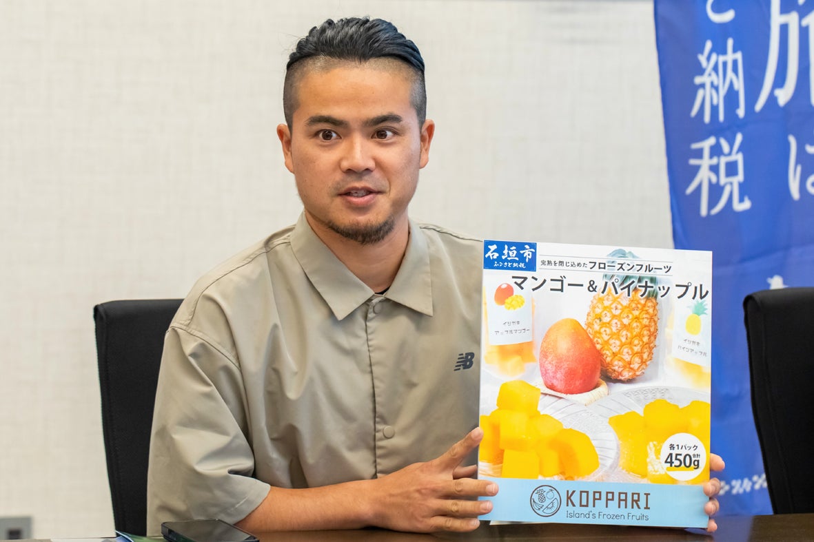 青果で、フローズンフルーツで、島の果樹を全国発送するフルーツ加工販売のコッパリ 宇根和孝さん。「果樹栽培は名人だけど計画出荷はメンドウという農家さんがいます。もったいないんです」そこで宇根さんは農家一軒一軒を訪ね歩いて注文、出荷をとりまとめている。また「見た目は規格外でも味は抜群な果樹はカット&冷凍で対応します。特別な冷凍装置を仕入れました」。進学、留学を経て島へ戻った宇根さんは小規模農家の集荷・配送代行、その体制化にとりくみ、規格外果樹の商品化を一つの事業に育てている。この12月からは、ふるさと納税3.0へ挑戦する。同3.0は石垣市が進めるクラウドファンディング型のプロジェクトで、希望者の申請を市が審査して通過案に支援を募り、目標額達成を経て事業者が資金調達するしくみ。「果樹商品の品質向上、拡販には作業場拡張とPR強化が欠かせません。選果スペース・保管設備・作業台を新設します。商品開発・催事出展・都心プロモーションを加速させます。ご支援、お願いいたします」宇根さんは意気込む。