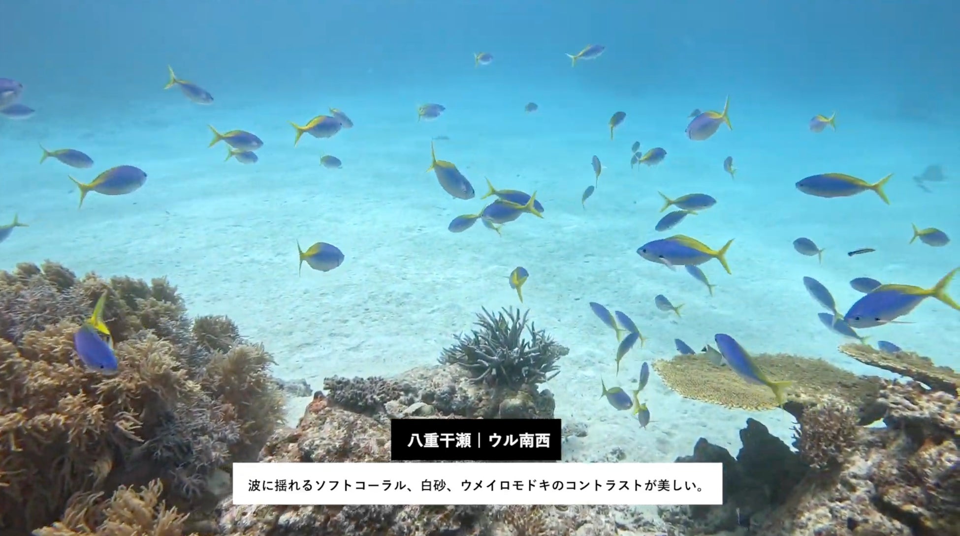 本調査時の映像。抜群の透明度を誇る八重干瀬は生物の楽園。