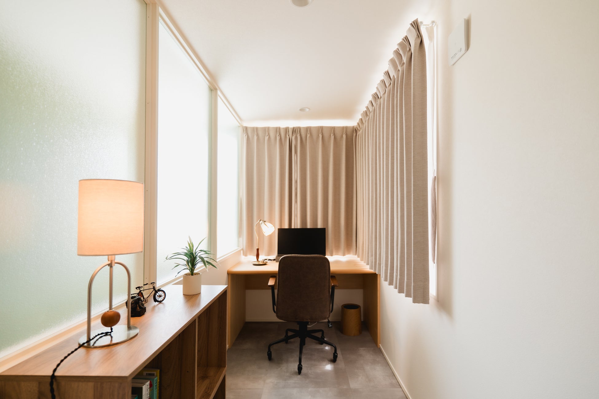 屋上テラスの隣にはワークスペースをご用意。旅先でのテレワークや長期の滞在にもフィットし、石垣島で暮らすような余白の時間を持ちながら、仕事と休暇の両立を叶えます。