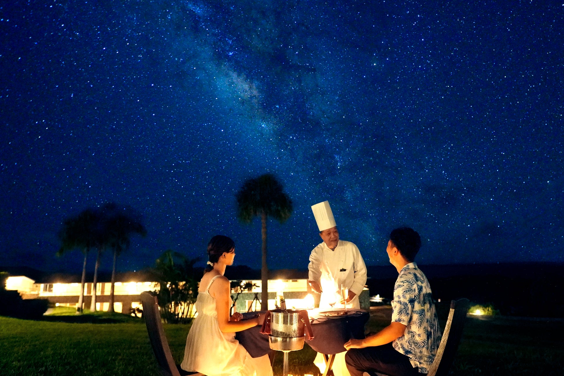 ゆったりとした南国の雰囲気を感じるロケーションで刻一刻と変わりゆく空、頭上に広がる世界有数の満天の星を眺めながら、沖縄の恵みをご堪能ください。