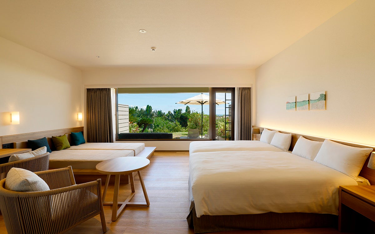 西表石垣国立公園内の豊かな自然と北半球最大級のサンゴ礁に囲まれた約1.9㎞の海岸線に面した立地を最大限に生かし、八重山の海とサンセットを堪能できる2つの絶景プールと、ウェルネスリゾートライフを満喫できるサウナ棟・スパ棟を新設。ロビーやレストラン、一部客室も大幅に改修し、食事・アクティビティ等もより充実しております。リニューアルでは、沖縄離島初となるビーチの波打ち際に近接した「Main Pool」、大人専用「Quiet Pool」やウェルネスエリアが誕生。レストランは八重山の自然や食材を活かした形態に刷新され、一部客室は40㎡のプライベートガーデン体験が楽しめる「ガーデンテラス・プレミアムルーム」に改装されました。自然豊かな敷地内や世界自然遺産の西表島等を満喫できる唯一無二のエクスペリエンスを提供しております。
