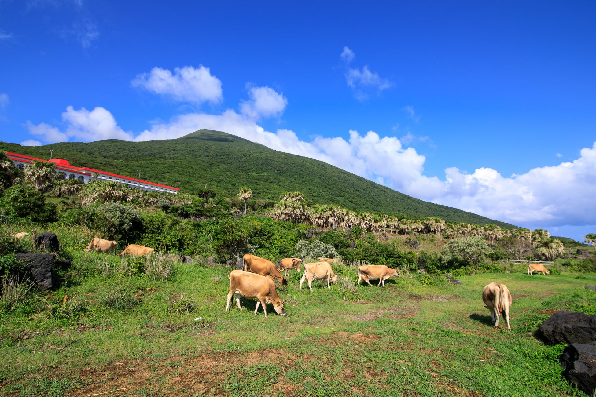 八丈島乳業株式会社が運営する「ゆーゆー牧場」は、東京から南へ約287km、海風と豊かな緑に囲まれた八丈島で「ジャージー牛」の放牧酪農を行っています。