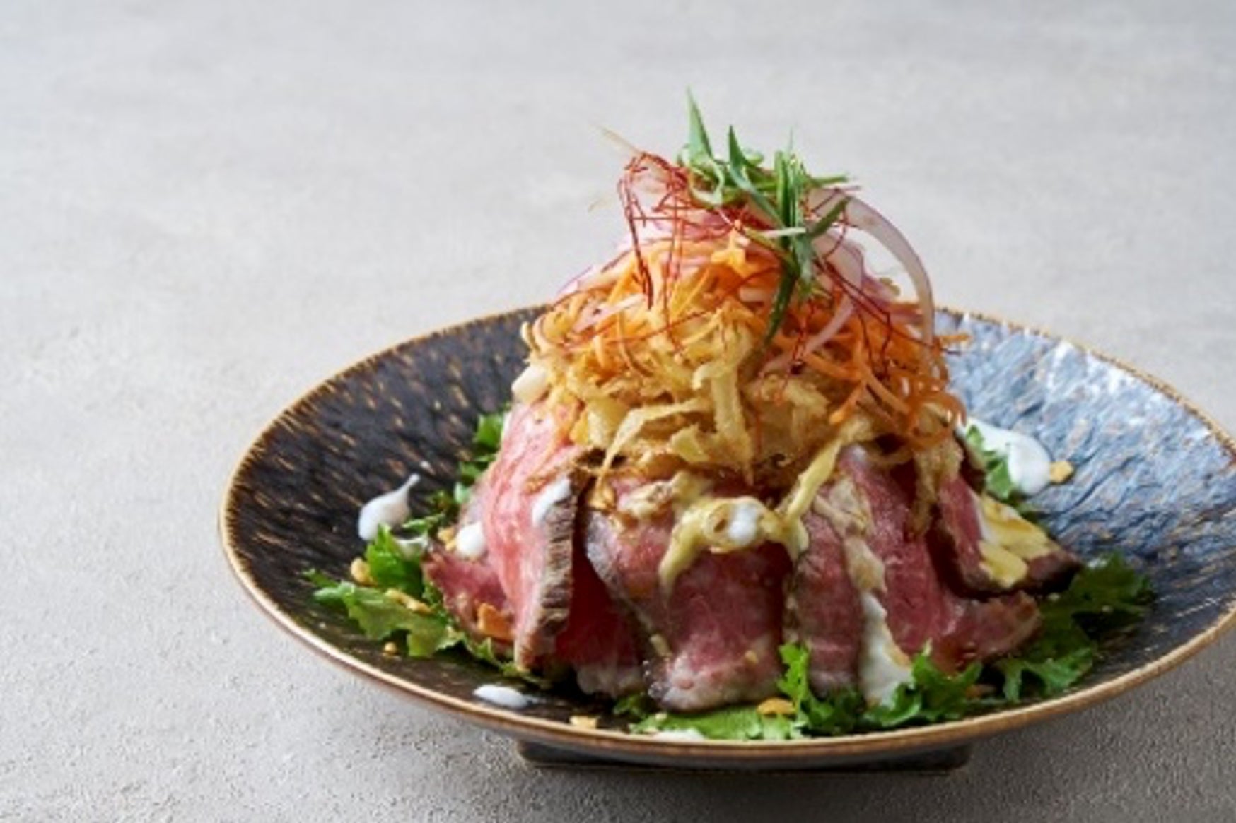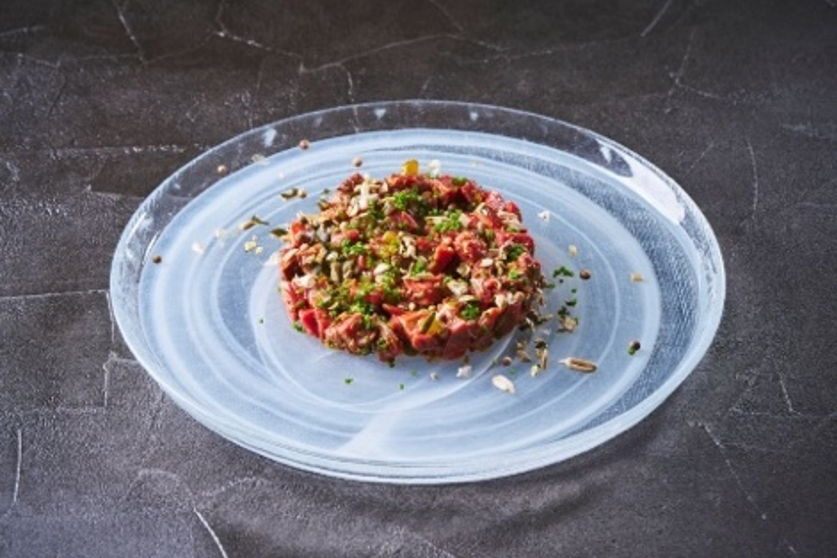 概要|緋桜牛のモモ肉をレアに焼き上げ、自家製スパイスとラー油で仕上げたタルタルです。香ばしさの中に上質な旨味が広がる、ステーキ&シーフード「シスクグリル」ならではの特別な一品です。