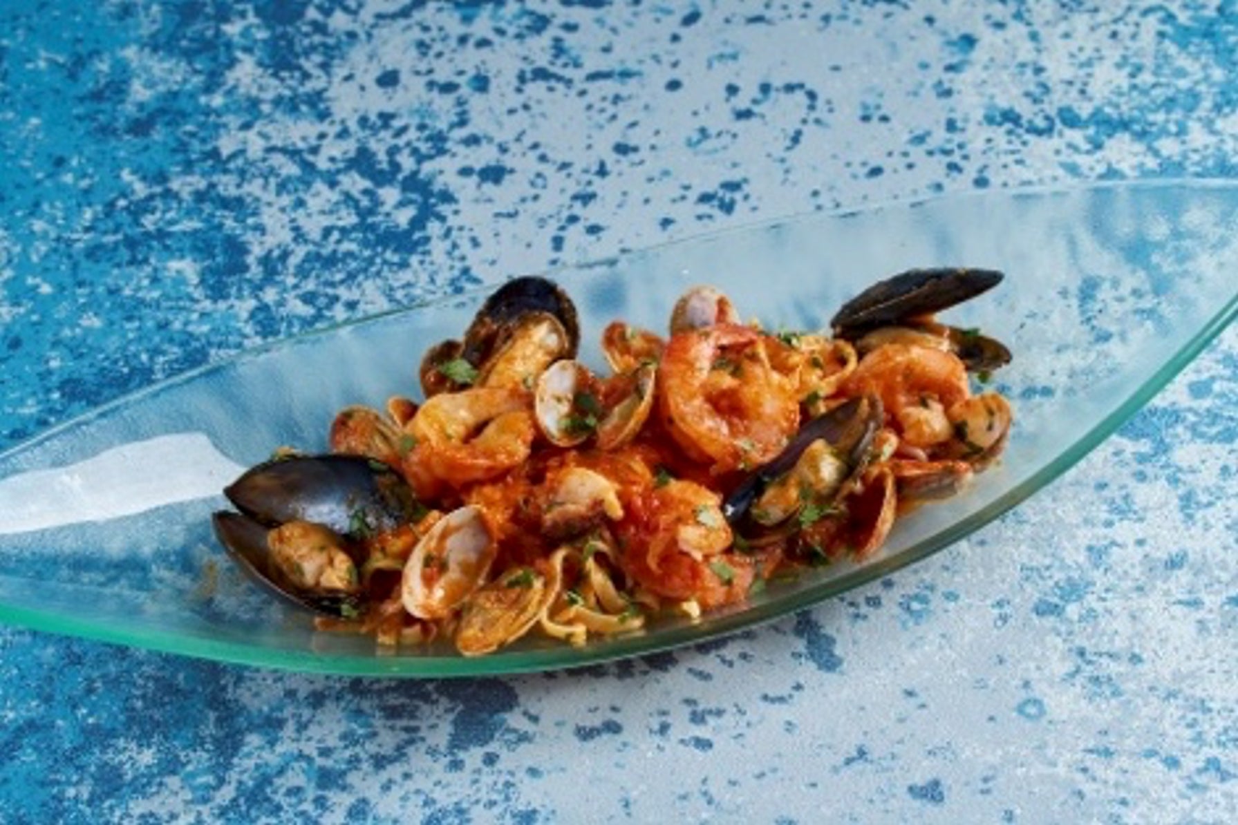 伊江島産小麦を使用した手打ちパスタのペスカトーレ