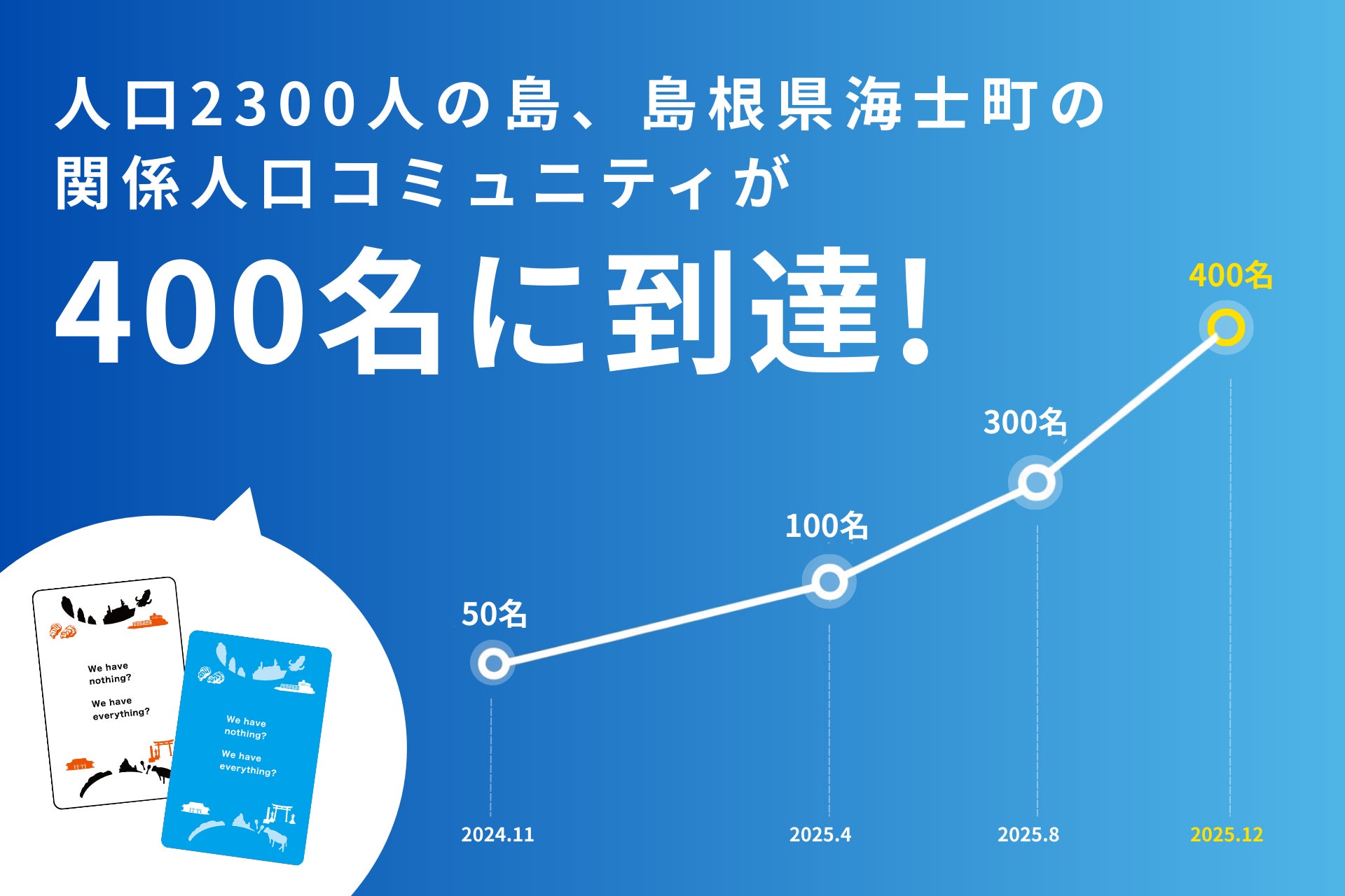 一般財団法人島前ふるさと魅力化財団(所在地:島根県隠岐郡海士町)が企画・運営する「海士町オフィシャルアンバサダー制度」は、2025年12月末時点で登録者数400名を突破しました。