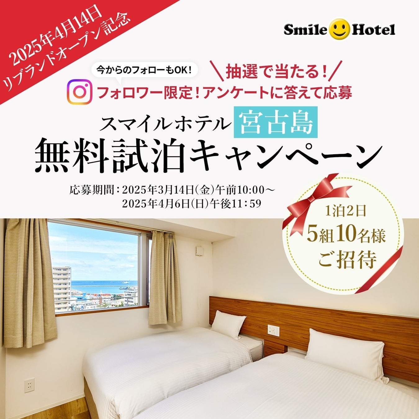 ◆応募条件:スマイルホテル公式Instagram(@smilehotels)を『フォロー』+簡単な『アンケート』に回答