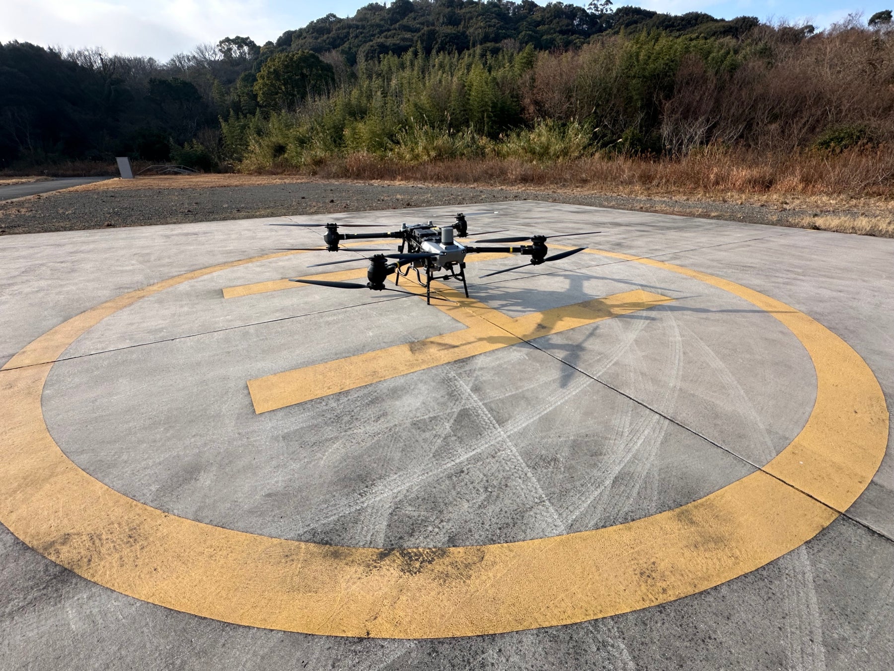本実験では、笠岡ふれあい空港から白石島ヘリポートまでの約9kmの海上区間において、大型ドローン「DJI FlyCart 30」による物資輸送を実施いたしました。