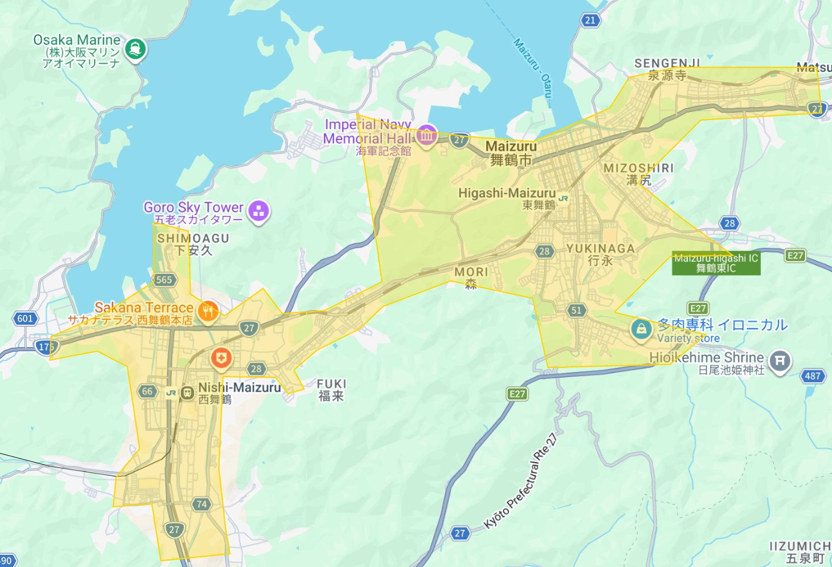 - 京都府:福知山市、綾部市、舞鶴市