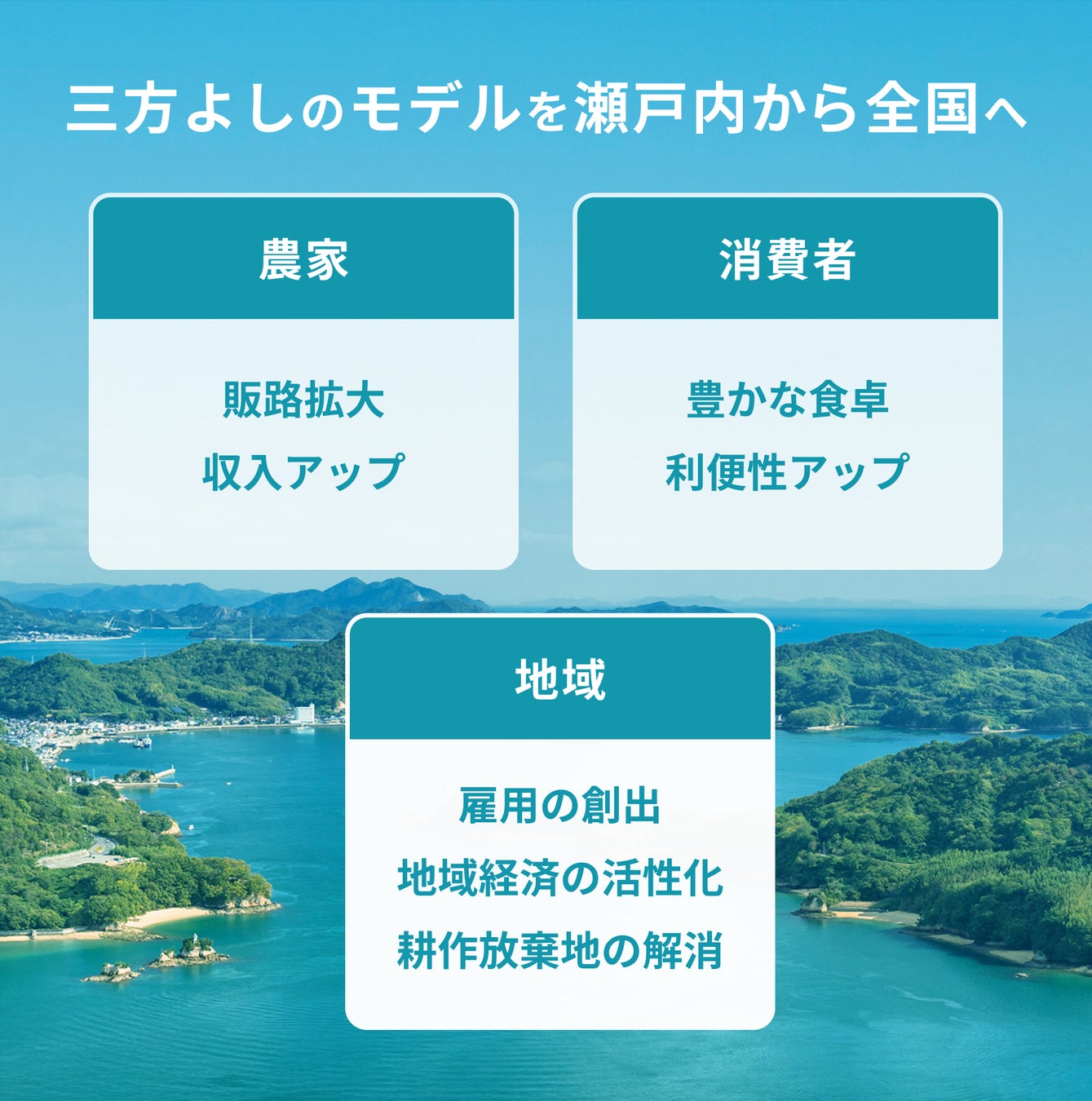アンドピリオドはこうした農家の販路拡大の成功モデルを瀬戸内から全国に広げ、大手流通業者では取扱いの対象とならない希少な農産物の販路を開拓し、各地の農家が手掛けるこだわりの農作物や栽培技術を次世代につなぐことを目指しています。