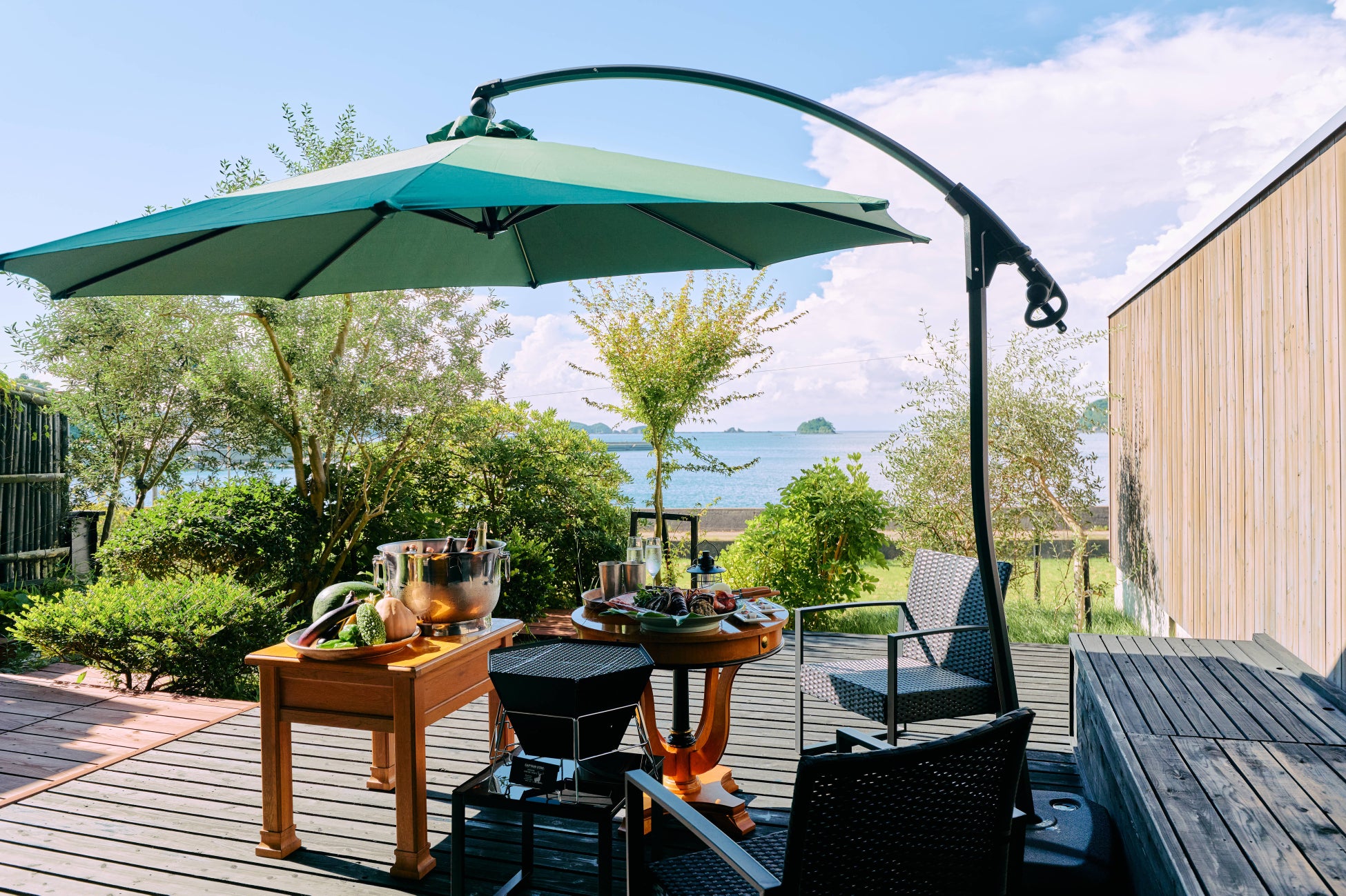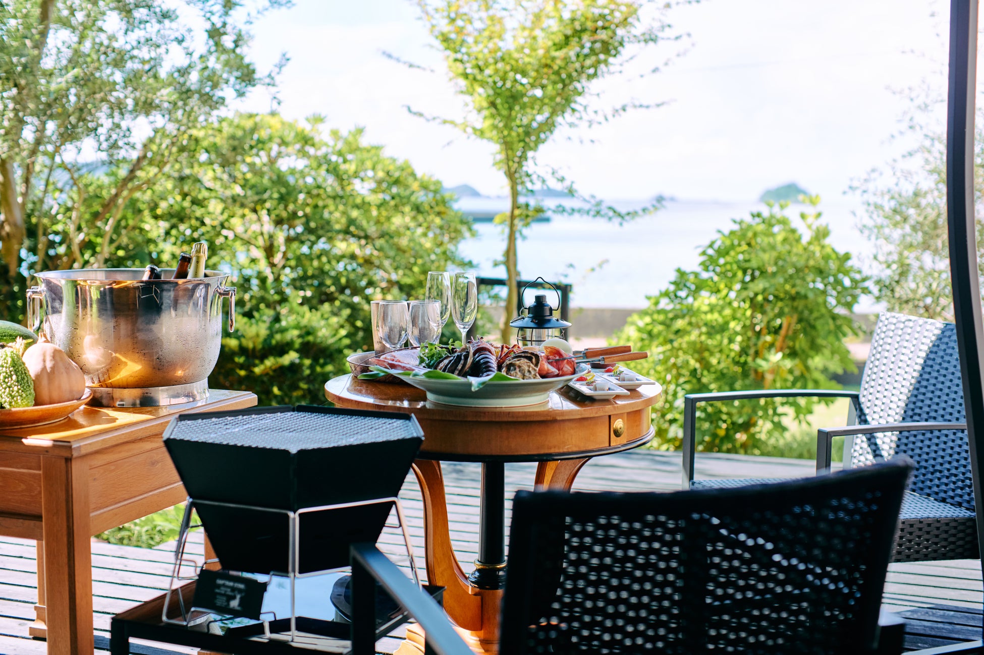 壱岐牛や旬の魚介を、オーシャンビューのテラスで味わう会席プラン