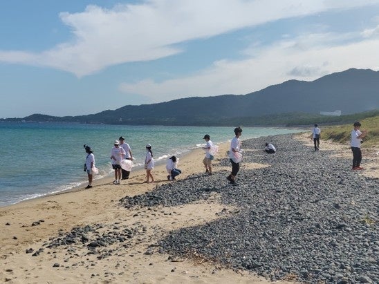 2日目の朝は、宿泊先の福岡県立少年自然の家「玄海の家」の目の前に広がる海岸でビーチクリーンを