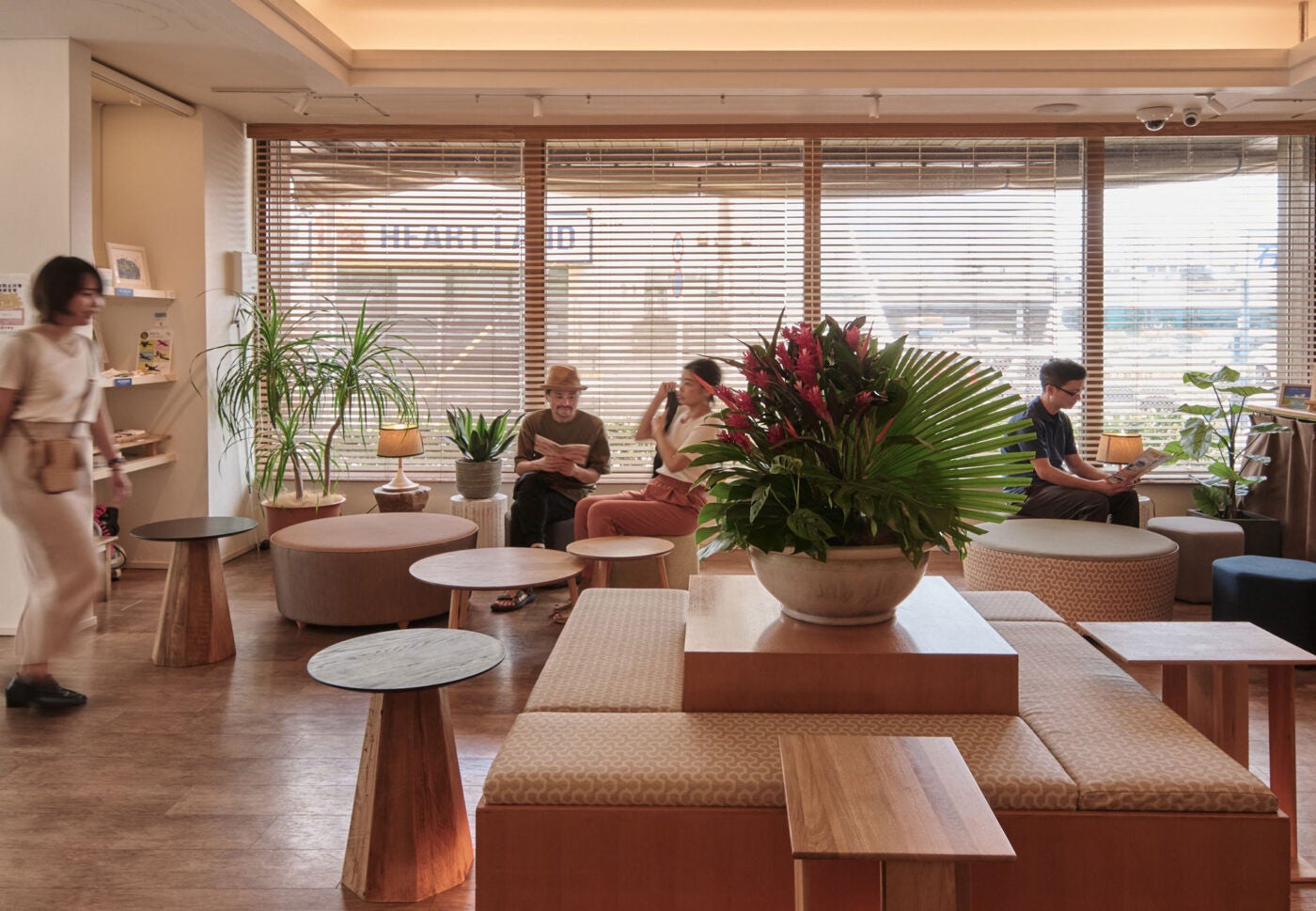 沖縄・石垣島にあるゲストハウス。プライベートゾーンであるバンク式の寝室と、ソーシャルゾーンとしてのゆんたく(団欒)スペースや共用キッチン。その二軸を掛け合わせています。創業当時、石垣島では宿泊施設不足が問題となり特に、初心者や一人旅をする女性が安心して利用できるゲストハウスが不足傾向にありました。既存建物の空きスペースを活用し、最小限(1ヶ月)の工期で改装。宿泊施設として再出発させました。 工期短縮のために島産素材は活かすほか、アーティストに滞在してもらいライブペイントにて完成した作品をそのまま展示しています。時を経ていくたびに、徐々に成長していく。そんなコンセプトを掲げています。2016年グッドデザイン賞受賞。