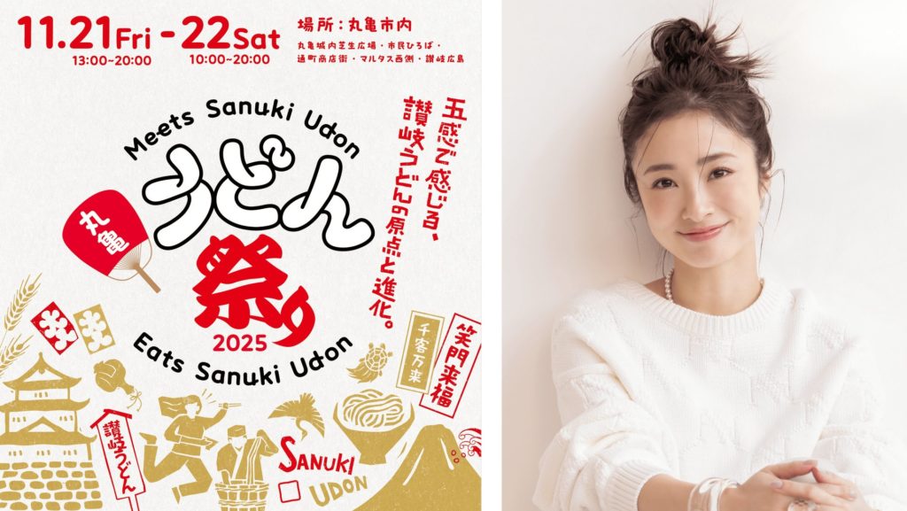 また、開会式や一部の催しには丸亀製麺のブランドアンバサダーである俳優の上戸 彩さんも登場。初開催となる「丸亀うどん祭り2025」を一緒に盛り上げていただきます。讃岐うどんの奥深さ、そしておいしさと魅力を再発見できる2日間、ぜひお楽しみください。