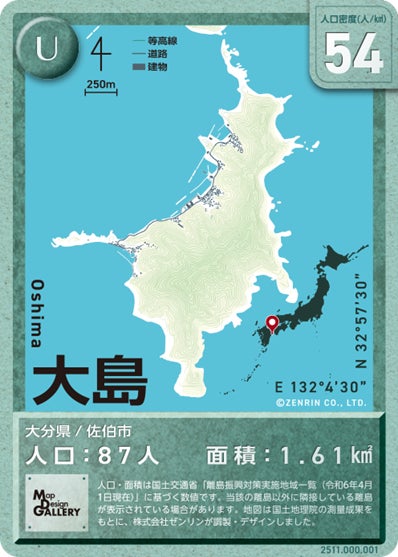 株式会社ゼンリン(本社:福岡県北九州市、代表取締役社長:竹川道郎、以下ゼンリン)は、地図がデザインされた文具や雑貨を販売するブランド「Map Design GALLERY」より、日本全国の有人離島をデザインしたトレーディングカード「Map Design GALLERY CARD/有人離島」の第2弾を、Map Design GALLERYオンラインストアにて2025年12月19日(金)12時より販売開始します。※実店舗では12月25日(木)より販売を開始