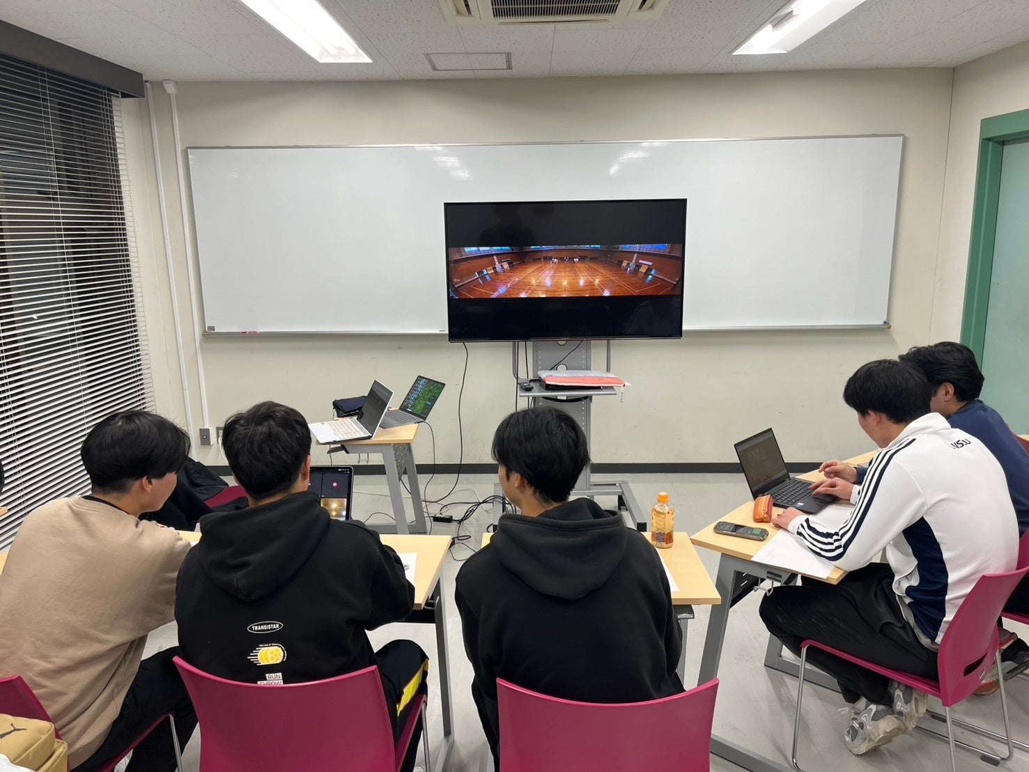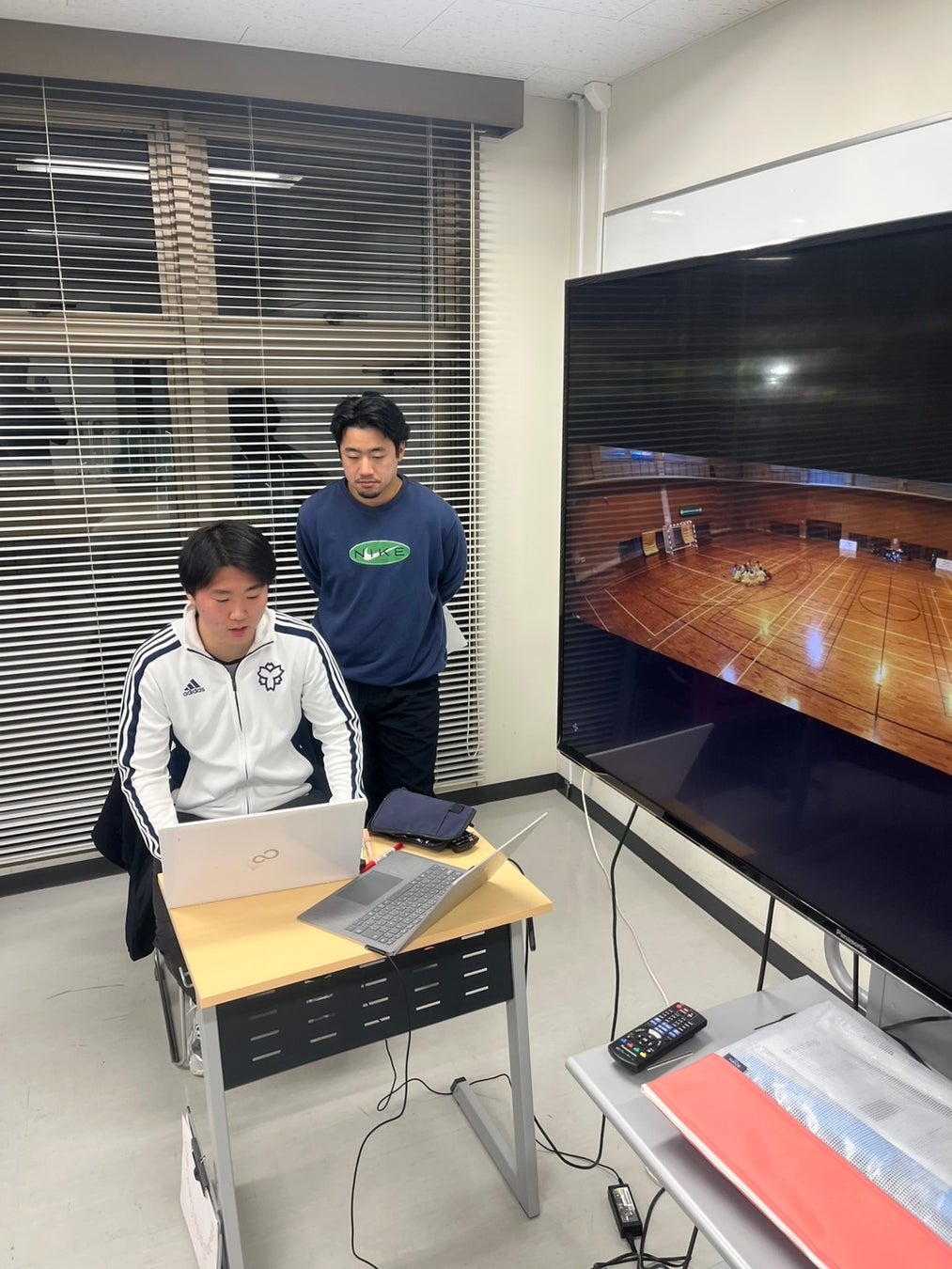 遠隔指導では、現役の大学生選手や監督から、コート全体を見渡した上でのポジショニングの修正や、戦術的な意図に関する指導が具体的に行われました。