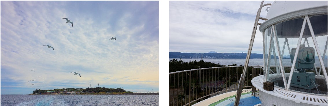 ➁のぼれる灯台からの眺望の美しさ:特に360度の海の景色・富士山の眺望・島の自然環境が評価され、【灯台のレンズ×富士山×自分の宝物】を一緒に撮影できるスポットとして好評。