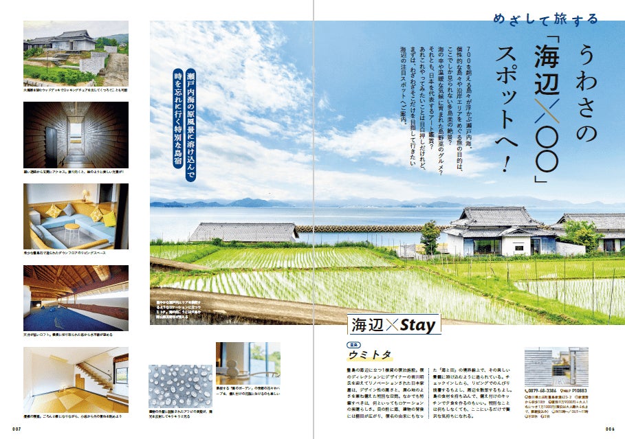 巻頭特集では、瀬戸内の魅力を最大限に感じられる、海辺の注目スポットを紹介しています。ユネス コにおける建築の最優秀賞を受賞し「下瀬美術館」や、自然豊かな離島でのどかな暮らしを体験でき る一棟貸しの宿「ウミトタ」など、注目スポットをぜひチェックしてみてください♪