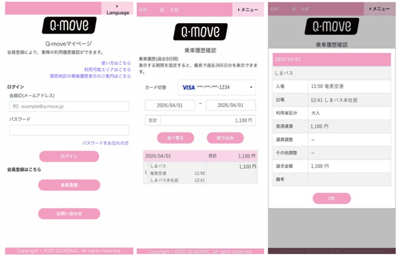 交通事業者向け決済及び認証のプラットフォームを提供するQUADRACのQ-moveサイト(https://q-move.info/)にアクセスいただき、「マイページ」の会員登録手続きの後ご覧いただけます。