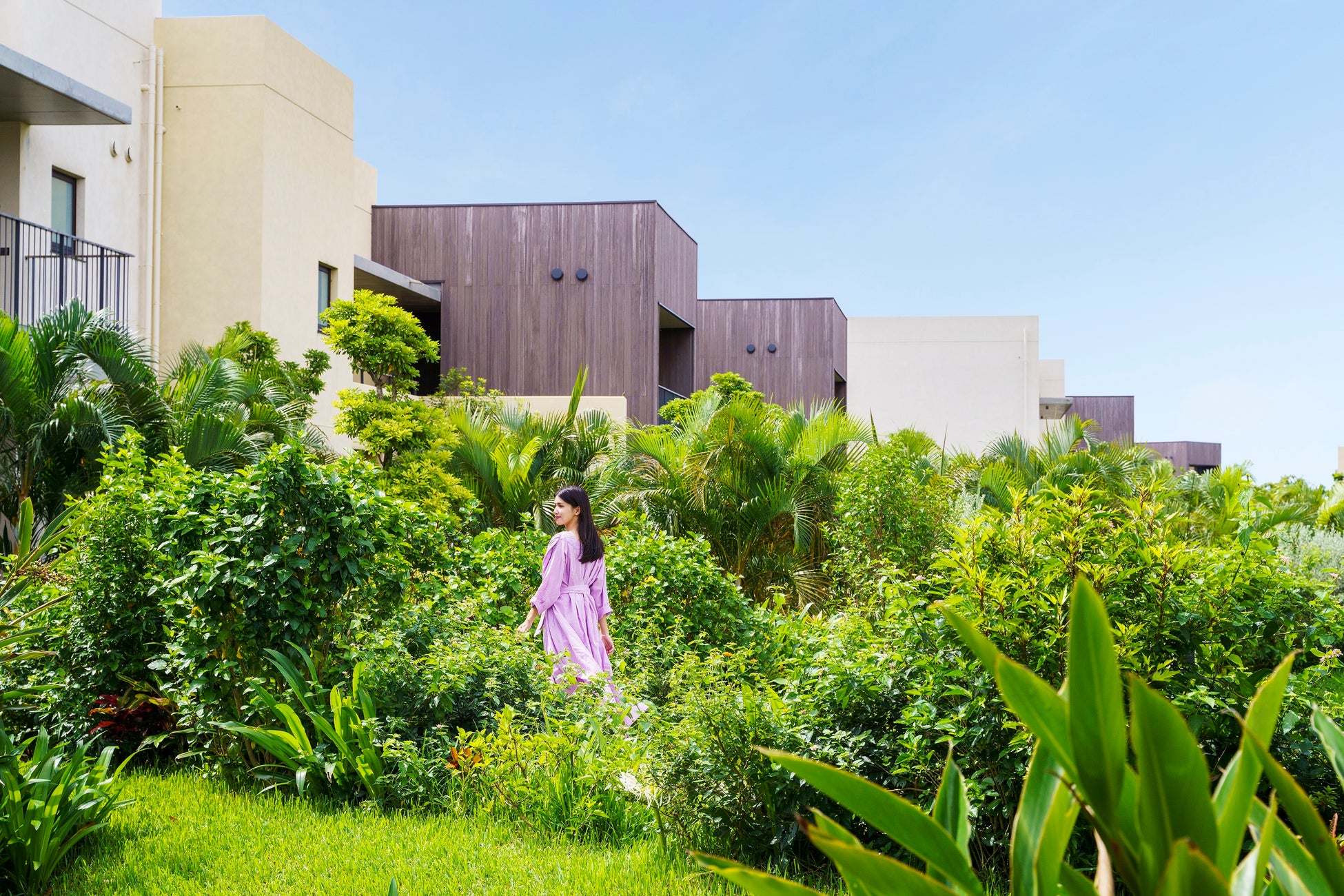 庭には沖縄ならではの植物や花が生息しており、花粉を気にせずゆったりと散歩できます。また、敷地内の「道場」では、朝と夜に行われるストレッチや沖縄発祥の「空手」体験で身体を動かし、沖縄県の伝統的な「ぶくぶく茶」も味わうことができます。