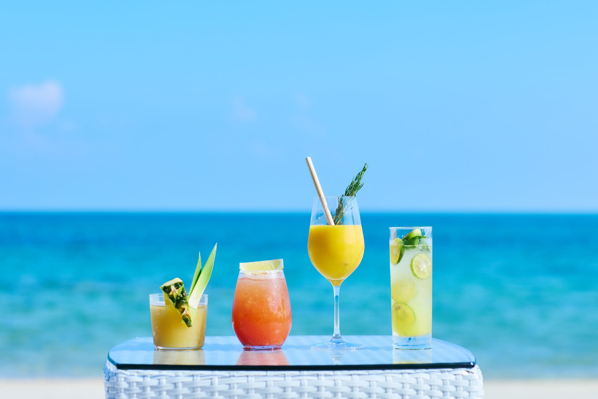 体験の最後に、旬の南国フルーツを活かしたサウナドリンクを提供します。春はパイナップル、夏はマンゴー、秋はグァバ、冬はシークヮーサーと、旬の味わいを活かしたノンアルコールカクテルで、失われたミネラルを爽やかに補給することができます。見た目も鮮やかで、海辺の環境に映えるドリンクです。
